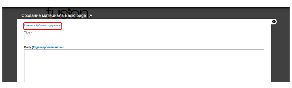 Для создания главной страницы откройте “Содержимое” → “Добавить содержимое” → Basic Page: