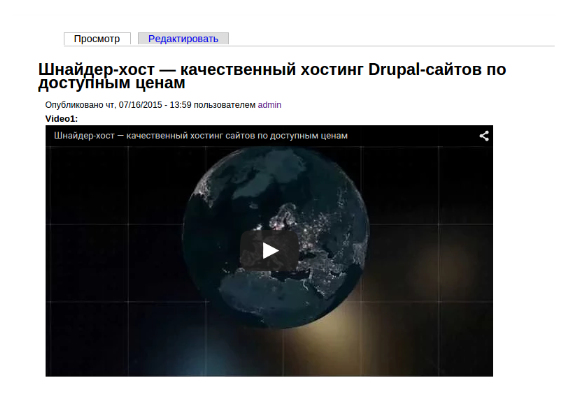 Проверьте, как отображается видео после настройки. Если вас что-то не устраивает, зайдите в “Конфигурация” → “Мультимедиа” → Video Embed и отредактируйте его.
